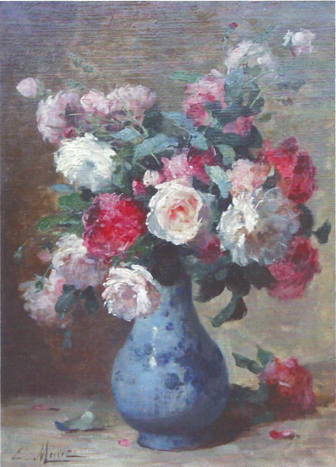 Né le 14 mars 1841 à Rouen et mort le 28 avril 1923 à Vernon, donc à deux pas de Giverny, Minet est presque exactement le contemporain de Monet (1840-1926) dont il partagera le goût pour les bords de Seine et la campagne normande. Mais là s’arrête leur similitude, car de milieu beaucoup plus modeste, il a d’abord dû travailler dans le textile, dessinateur en indiennes puis apprêteur de drap à Elbeuf, avant de pouvoir s’adonner à la peinture. Formé à l’École de Dessin de Rouen, sous la direction de Gustave Morin, il va ensuite se perfectionner dans l’atelier de peintres parisiens, Jean-Baptiste Guillemet ou Henri Gervex. Mais c’est surtout le paysagiste César de Cock suivi dans ses tournées près de Gasny, qui devait l’orienter vers ses motifs favoris, les fleurs et les scènes champêtres.
