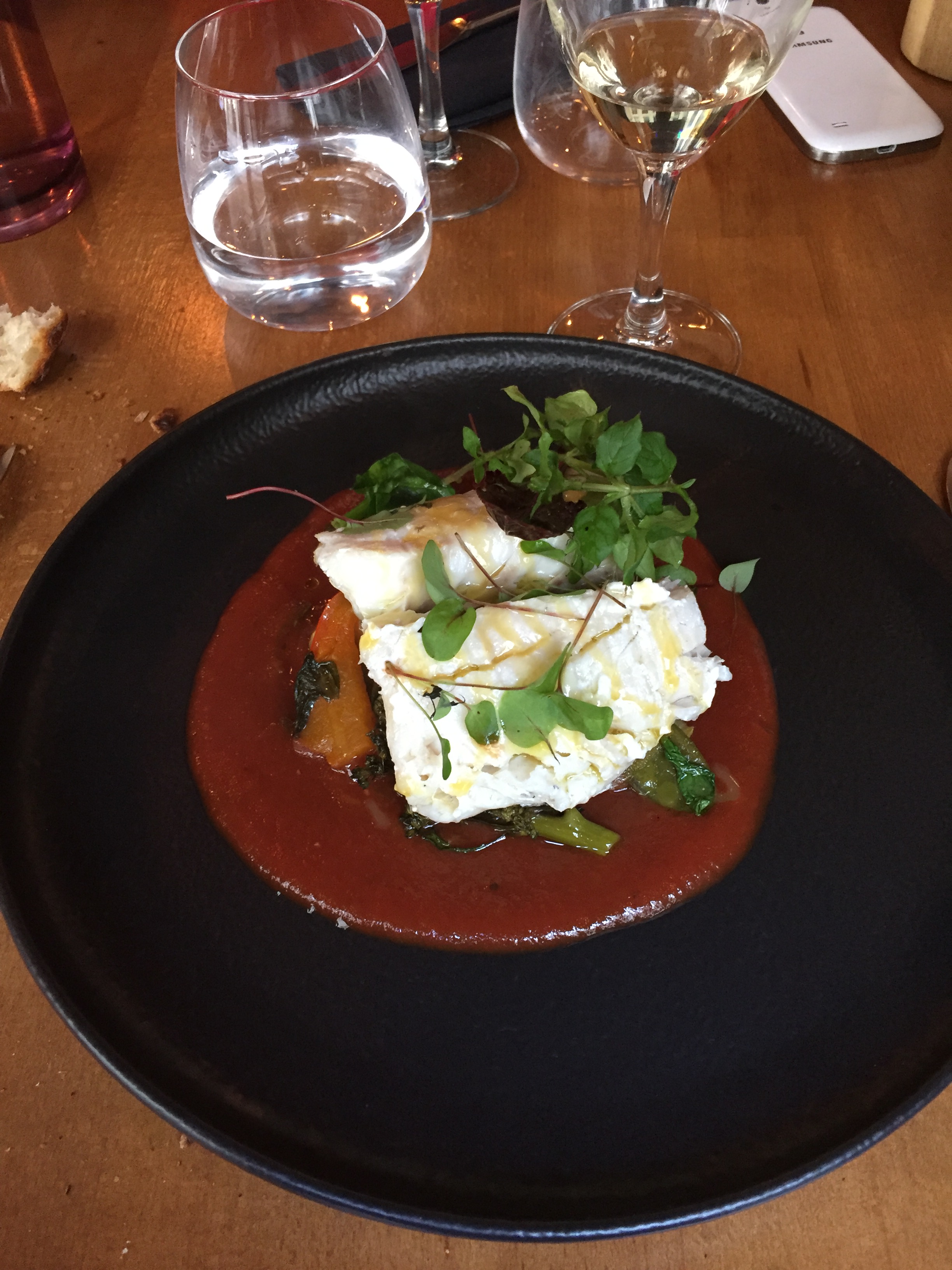 Le Cabillaud, pour sa part, était un peu trop cuit selon les critères au goût du jour, mais le coulis de tomate nous ouvrait aux saveurs de l’été en plein hiver. Pour le côté végétarien, le risotto polenta champignons, offrait cette subtilité du fondant de la polenta, sans l’ombre d’une aspérité granuleuse et le craquant du champignon gouteux.