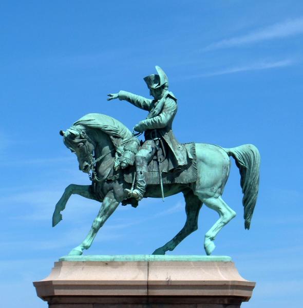 S’il n’existe en tout que 6 statues équestres de l’empereur – bien moins que de Jeanne d’Arc, une femme, l’aurait-on oublié ? – , deux se trouvent en Normandie. Pourquoi, alors que ce n’est ni sa terre natale ni le lieu d’un de ses hauts faits ? A l’origine de cet hommage exceptionnel, il y a avant tout le souvenir d’une visite ou d’un passage resté vivant dans les mémoires. Ainsi au Val-de-la-Haye (voir l’ouvrage de J. Chaib) : dès 1844, une colonne surmontée d’un aigle de bronze, avec au pied quelques reliques ramenées de Sainte-Hélène, fut érigée là où, le 9 décembre 1840, furent transbordées les Cendres sur un navire capable de remonter la Seine.