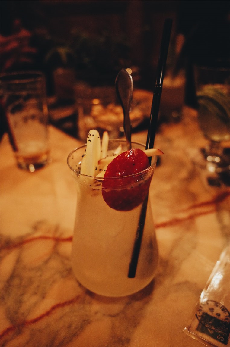 Il y a la base, qui est l’alcool de base qui va donner la force du cocktail ; le corps, le soutien qui fait le lien avec le troisième produit, l’élément aromatique qui donne l’orientation de fin, finalement la spécificité du cocktail. Le corps peut être un jus, une purée de fruit ou une liqueur. L’élément aromatique, un sirop, une liqueur, un bitter.