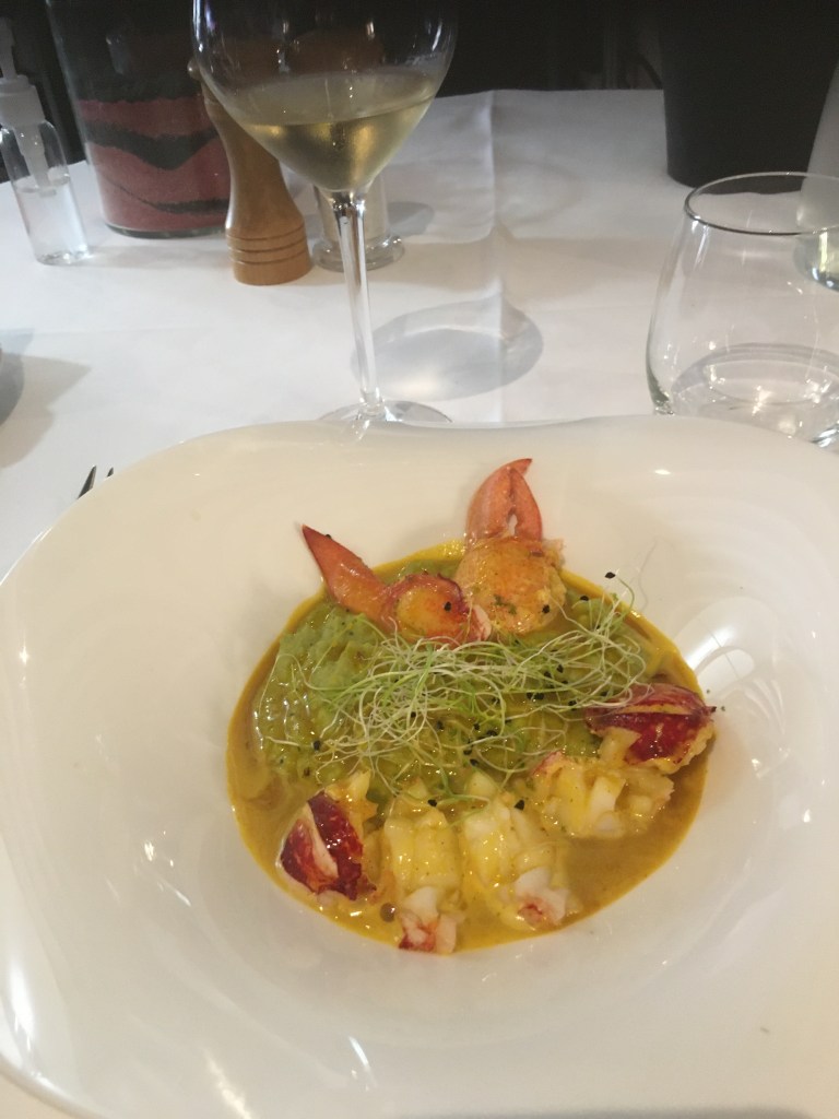 Le saumon qui préside à l’entrée, comme malheureusement presque tous les saumons de nos tablées, pâtis du gras inhérent à son élevage, mais ce petit rien de mangue qui épouse la texture de sa chair, le ravigote de son air acidulé. La finesse en bouche du fruit travaillé sans excès de sucrosité sert de liant en bouche entre le roi des mers et la mousse d’avocat-raifort. A défaut de parler de bouchée exquise qu’on réservera aux étoilées, la bouchée n’en est pas moins parfaite dans son équilibre des textures, comme des saveurs ou, plus rare, dans sa longueur en bouche.