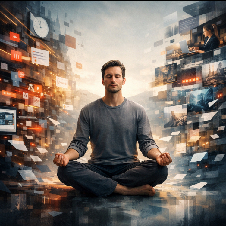 Le second mécanisme est la fragmentation du temps vécu. L’homme ne vit pas seulement dans le temps mesuré ; il vit dans une durée intérieure qui permet la maturation, la compréhension, la décision. Or l’interruption permanente — messages, alertes, changements de tâche, sollicitations multiples — transforme le temps en séquences brèves et discontinues. L’intelligence peine alors à approfondir, la volonté à persévérer, et l’imagination occupe l’espace laissé vide par la continuité perdue. Nous avions déjà observé, en réfléchissant au rapport au temps, ce glissement du temps comme milieu vers le temps comme pression. Cette pression, intériorisée, modifie le rythme même de la vie psychique.