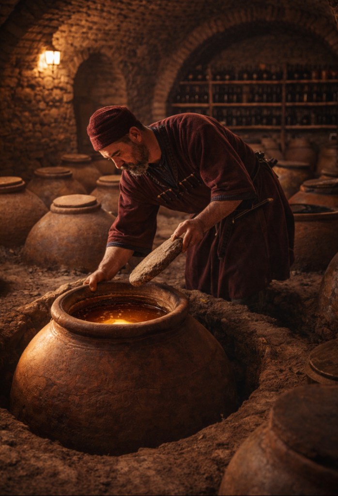 La vinification en qvevri présente aussi un intérêt historique. L’usage d’amphores enterrées rappelle certaines pratiques de la viticulture antique dans le bassin méditerranéen.